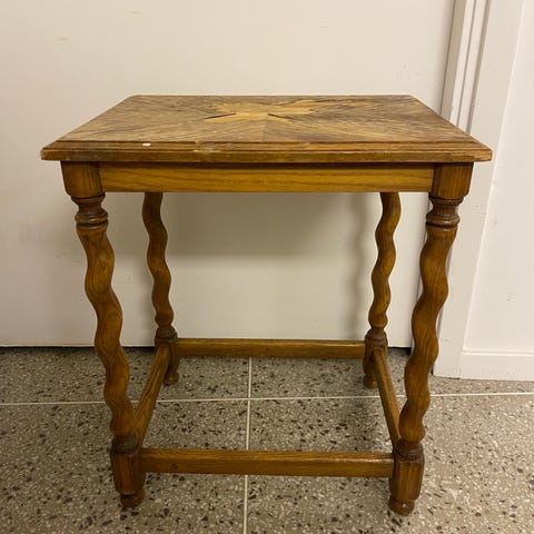Charmigt sidobord, sängbord, sybord i allmoge stil. Kurbits målning. Öppningsbart lock och utdragbar låda. Fint använt skick. Mått 64cm hög 35 cm djup och 54cm bred. Pris: 400kr