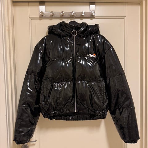 Varm, vattenresistent, se sista bilden för att se hur jackan får ett mönster vid kontakt med vatten annars är den helt svart.