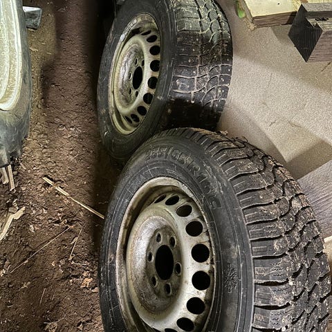 Jättefina dubbdäck, suttit på en transporter, gått 1 säsong. Lite kantstött på fälgarna men inget som syns jättemycket.