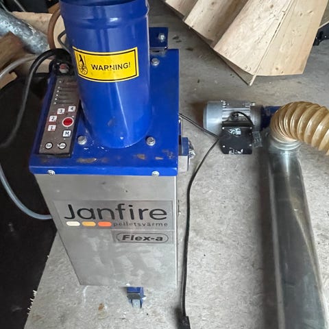 Janfire Flex-A pelletsbrännare med matarskruv och MAFA veckoförråd säljes. Allt fungerar och är i ett bra begagnat skick.