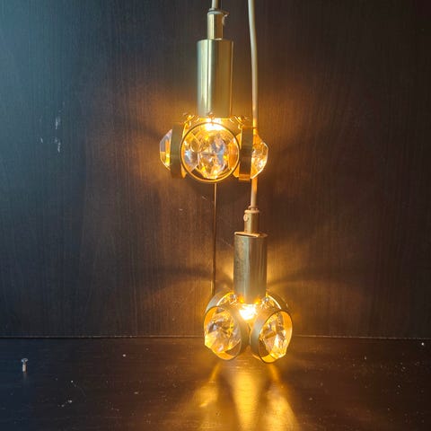 Renoverade med nya dragsnören o bytta långa sladdar, OBSERVERA, saknar lite färg på insidan av ena kupan, mycket enkelt att "bygga om" till fönster lampa med strömbrytare på sladden