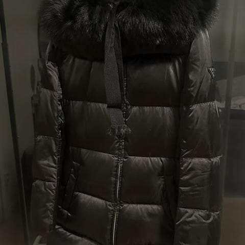 Re-nylon cropped blouson jacka Prada i storlek 40. Har midjeband som du kan justera. Jag är normalt 38/M i toppar och har använt denna! Så skulle säga att den passar någon som normalt är mellan 38/40 M/L! Jättefint skick, använd men inga skador eller så! Aldrig tvättad så kanske behöver en kemtvätt (men den är ej smutsig/inga fläckar!!) Köpt i Paris förra året. Har kvitto som skickas med! Väldigt slittålig jacka som kommer hålla länge! Nypris var ca 20 000kr. Kommer med medföljande galge och överdrag.
