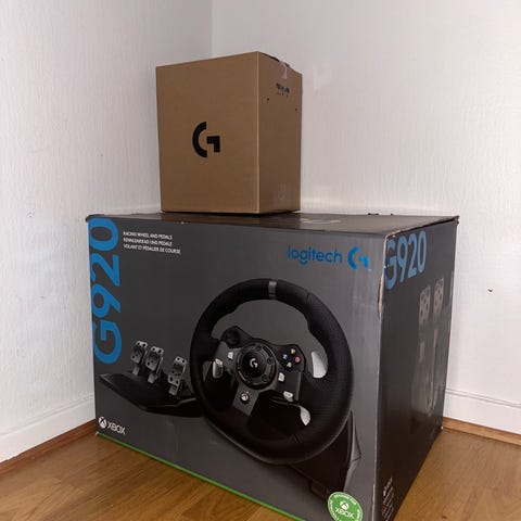 Logitech G920 ratt och pedaler. Fungerar på PC och Xbox. Det är en bra instegmodell till SimRacing och väldigt driftsäker. Om du har PC är det bara ladda ner programvaran, installera och köra. Xbox ska ha full Plug&Play