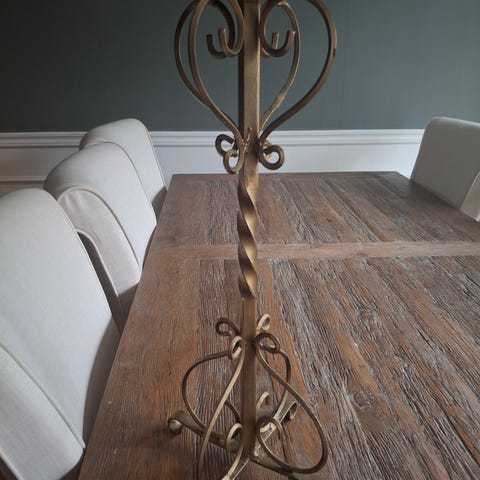 Gammal, massiv (tung och rejäl) ljushållare eller ljusstake i gjutjärn. Äkta hantverk gjord i en smedja.