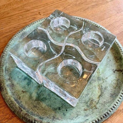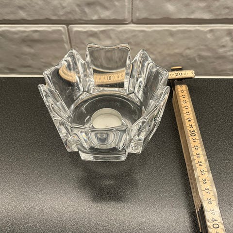 Puck ljushållare från Orrefors, formgiven av Lena Bergström. Tilldelad utmärkelsen ”Utmärkt Svensk Form”. Ny i presentask.