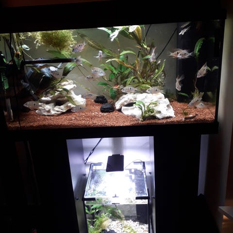 Akvariet är i väldigt fint skick, har bara använts under en period som yngelakvarium.