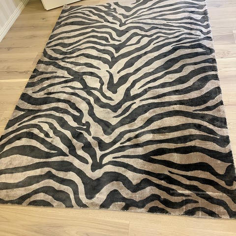 Kvalitetsmatta i bambusilke från The Rug Company. Mönster i grått och blått. Köpt i London för 45 tkr för 7 år sedan. Mått: 270*355 cm.