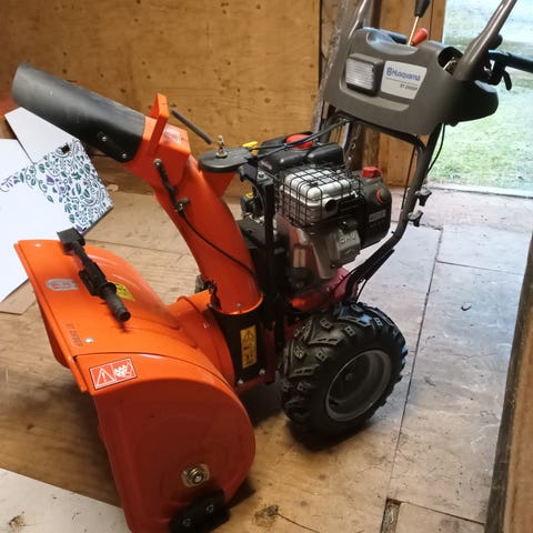 80cm bred ,bensin,hand och elstart , har varit magasineras inomhus en längre tid hos Försvarsmakten .