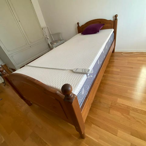 Hej! Jag har en säng (150 x 200 cm) som jag gärna vill skänka bort till någon som behöver den. Sängen är i bra skick och inkluderar en madrass. Den är bekväm och har använts i ett rökfritt hem utan husdjur.