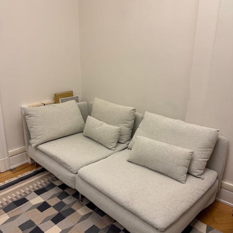 Säljer min SÖDERHAMN 3-sitssoffa i tyget Gransel, naturfärgad.