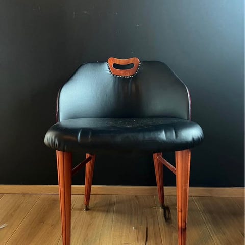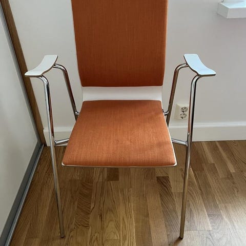 En karmstol från företaget Two-O. Sitsen och ryggstödet i orange färg kommer från Amsterdam arena i samband när de renoverade fotbollsarenan. De har sedan satt sin prägel på stolen med svart metall och fina trädetaljer i valnöt. Släpptes i begränsad upplaga om 14st/färg (orange, röd & blå). Äkthetscertifikat på att delar kommer från arenan medföljer.