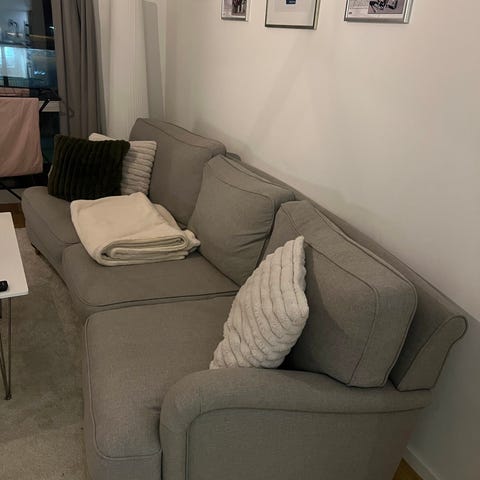 Säljer en Oxford Delux 3-sits soffa, svängd. Väldigt bekväm och rymlig soffa med fin form som ger ett mjukare intryck i rummet.
