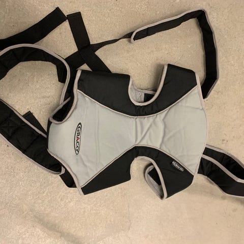 Graco barnvagnssele och åkpåse i svart och grått. Materialet är mjukt och anpassat för att användas tillsammans med barnvagnar. Produkten är utformad för att ge extra komfort och skydd för barnet under promenader.