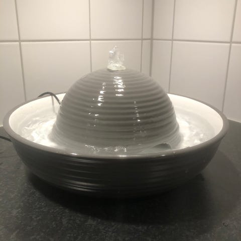 Vattenfontän Drinkwell i keramik. Fint skick. Två extra filter medföljer.