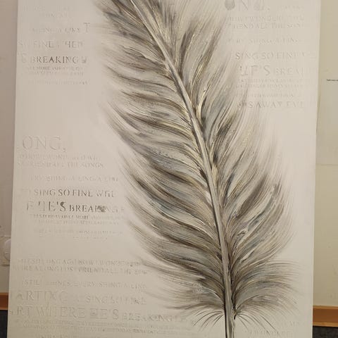 Blå fjäder canvas 127x66cm