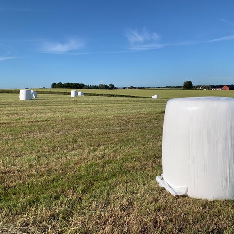 2. Gräset var slaget på åkermark den 28 juni och pressades den 2 juli - 640 kr/bal.