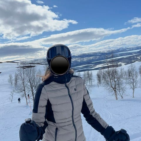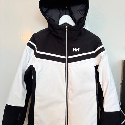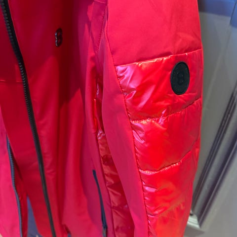 snygg skidjacka med snölås, liftkortsficka, stor luva som går på hjälm. De svarta detaljerna är blanka så ser lyxig och snygg ut.