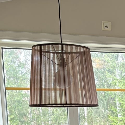 Två taklampor med lång röd kabel & stora glödlampor