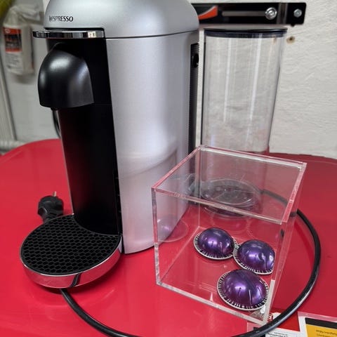 Riktigt gott kaffe blir det. Och denna maskinen gör lite större koppar än den vanligare Nespresso.