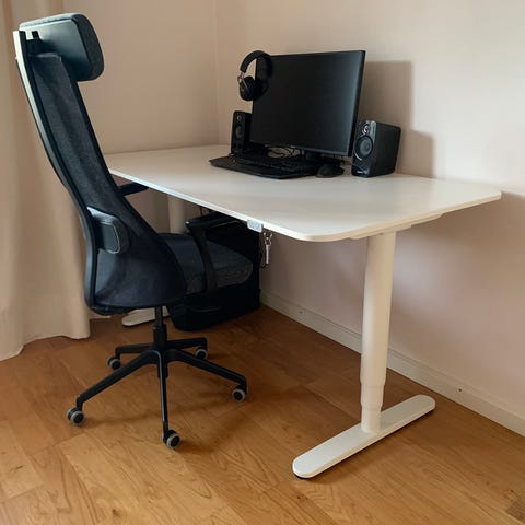 Säljer ett elektriskt höj- och sänkbart skrivbord från AJ Produkter, en svensk tillverkare som är känd för sin kvalitet. Bordet är litet, stilrent och smidigt – perfekt för hemmakontoret. Måtten är 120x60 cm och höjden går att justera från 71 cm till 118 cm.