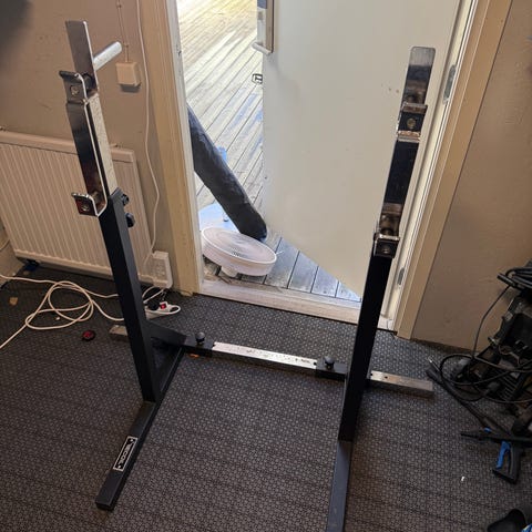 Master Pro-ställ för skivstång med justerbar höjd och mycket stabil konstruktion i metall. Passar för styrketräning och lyftövningar. Nypris: 3.500 kr