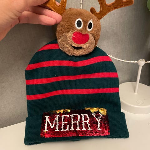 En Söt jultröja med en räv med tomteluva och halsduk. Använd ett fåtal gånger. strl 104