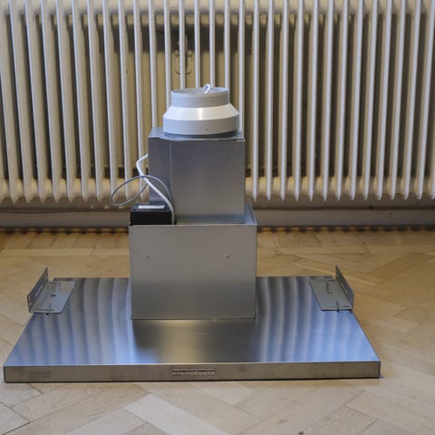 Fläkten är endast använd ett fåtal ggr. Har hängt i ett kök utan att vara installerad. Skyddsplasten är fortfarande på förlängningen av spiskåpans skorsten. Nya kolfilter ingår.