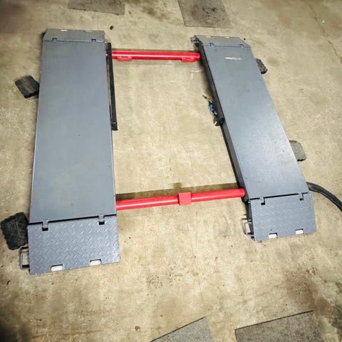 Hjulramper från Pela i fint skick, lite använda. Hydraulisk saxlyft med fotpump 1350kg. Säljes då jag köpt en servicelyft istället.
