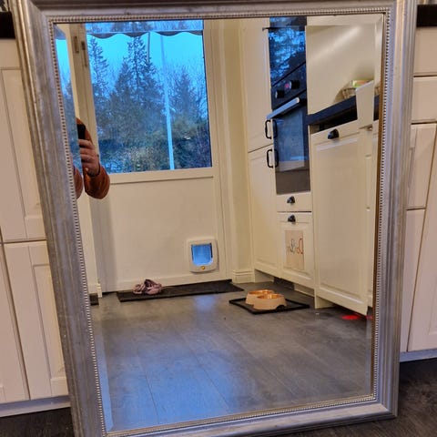 IKEA Levanger spegel. Spegeln har en dekorativ ram med pärlornament. Mått 140cm x 50cm.