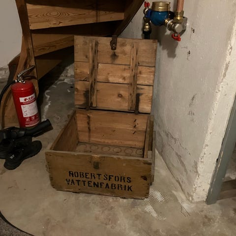 Trälådor i vintage stil för förvaring. Tillverkad av trä med öppna spjälor på sidor och botten.