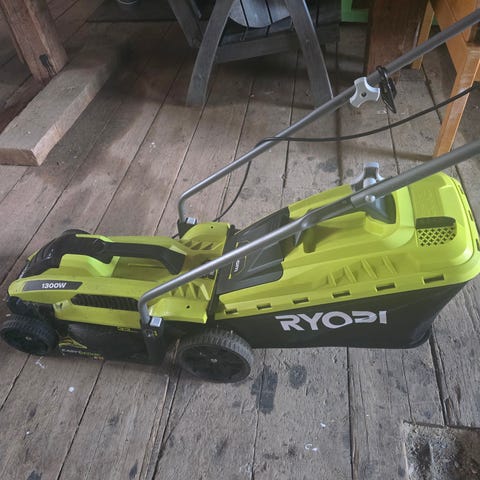 Ryobi 18V grästrimmer med justerbart handtag och teleskopskaft. Batteridriven trimmer lämplig för trimning av gräs och ogräs i trädgården.