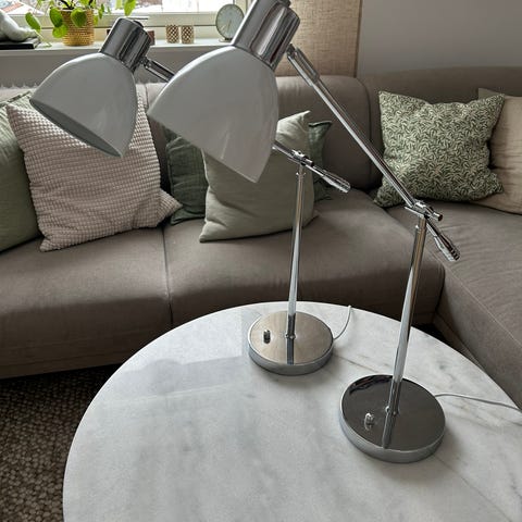 2 vita bordslampor