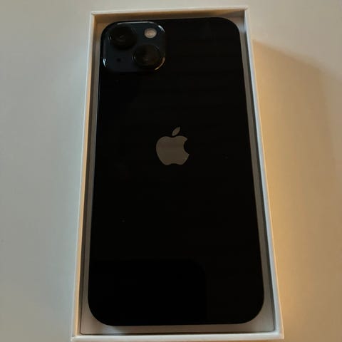 Apple iPhone 13 mobiltelefon med 128 GB lagringsutrymme i grön färg. En smartphone med dubbla kameror på baksidan och en skärm med hög upplösning. Enheten är använd och batteriets maximala kapacitet är 85 %.
