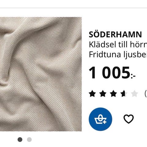 Soffdel från Söderhamn utan ryggstöd. Klädseln behövs tvättas.