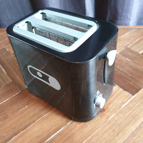 Detta är en retro brödrost i krom från Elektro-Helios.