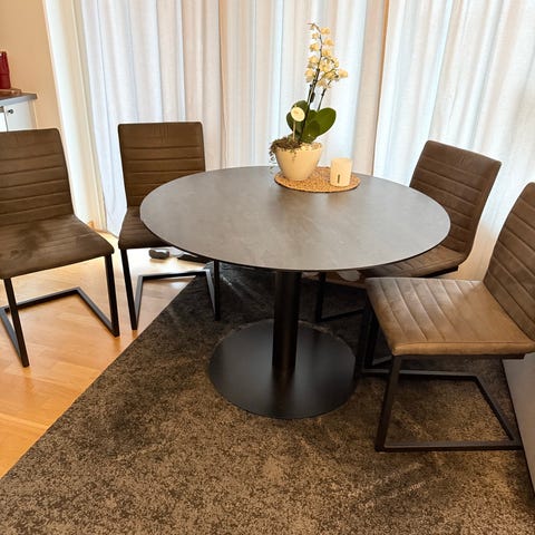 Mio Runt matbord och 4 kiwi stolar i beige sammets tyg