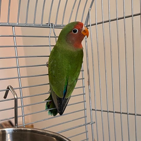 Lovebirds, hona och hane runt två år gamla. Inte handtama men heller inte rädda eller skygga. Nyfikna och glada i livet...och varandra. Säljes med stor bra bur i sundbyberg.