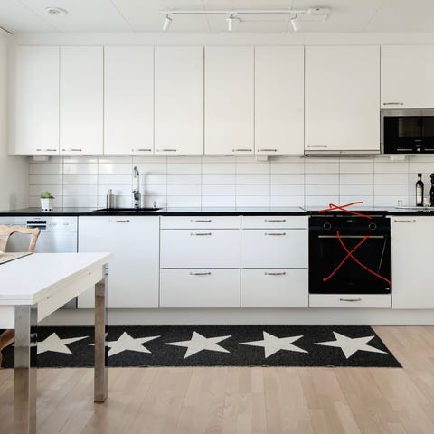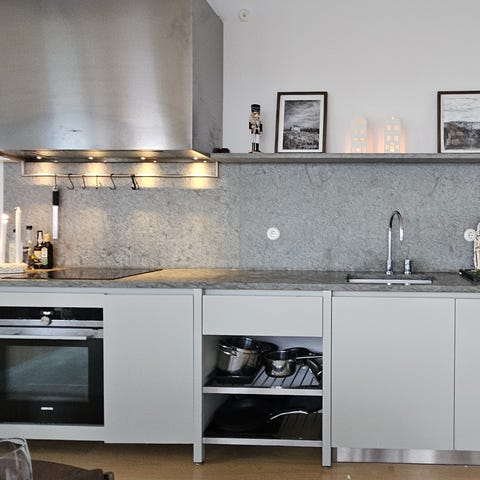 Vitt Tibrokök med blankpolerad bänkskiva i granit från. Köket är från 2007