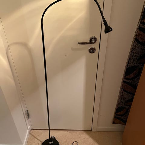 Hel och fin golvlampa skänkes mot avhämtning. Den är 177 cm hög och foten är 30 cm i diameter