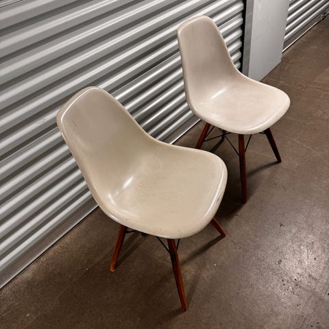 4 st stolar från design Charles & Ray Eames, märket Vitra. Använda väl men fortfarande i gott skick. Under stolarna är det markerat ifrån designers.