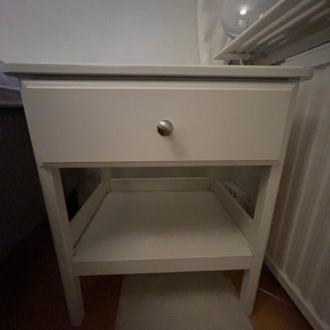 Jättefint litet sängbord/nattduksbord från IKEA i vit metall. Säljs inte längre på IKEA.