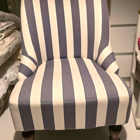 Fåtöljen har varit med ett gäng år och är långt ifrån nyskick. Sliten och med fläckar skvallrar tyget om åldern, men fåtöljen är stabil och go att sitta i.