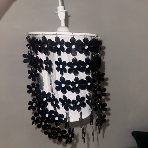 En charmig taklampa i retrostil med ett vackert blommönster. Perfekt för att skapa en mysig atmosfär i hemmet.