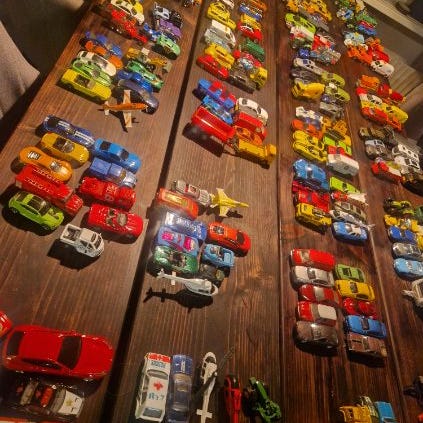Leksaksbilar i olika storlekar. Metall med ett undantag. 1960-tal. 1 ägare