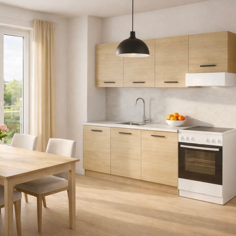 Väggskåp 80 cm, väggskåp 60 cm, väggskåp för köksfläkt 60 cm, väggskåp 40 cm, stående underskåp för diskho 80 cm, stående underskåp 60 cm, stående underskåp med lådor 40 cm