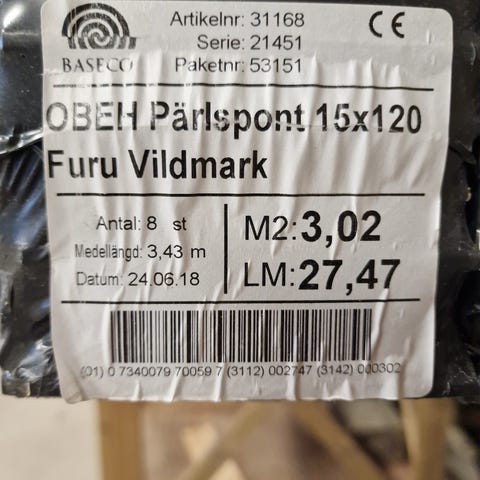 Pärlspont 13x70mm (dvs 7,0 cm breda). Lösa enskilda plankor. 5st plankor. Längd: 4.20m x 5st plankor. Totalt 21 löpmeter.