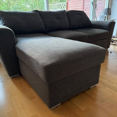 En ljus/dovgrön 3-sits-bäddsoffa från ikea "Grönlid". Förvaringsdel i schäslongen. Madrass finns i soffan som ingår. Fint skick. Finns i Mölnlycke. Mått: bredd ca 275cm, djup ca 95 cm, schäslongen ca 160 cm. Hör gärna av er om ni har frågor.