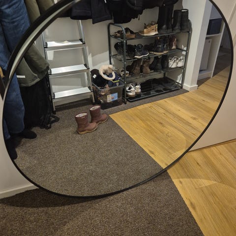 IKEA rund spegel med enkel design. Spegeln är lämplig för olika rum och kan användas för att komplettera inredningen samt för daglig användning.
