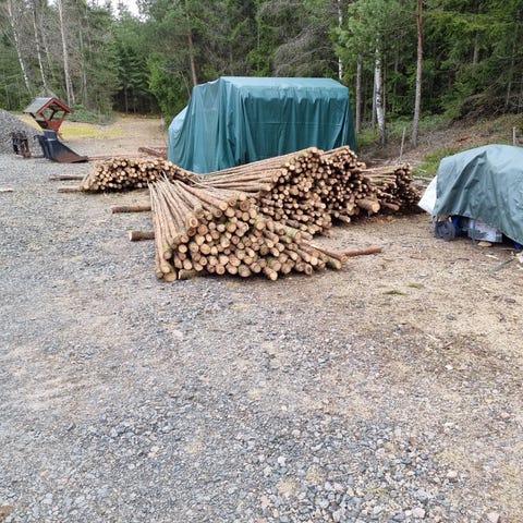 Ganska hårt packat i gedigna, hygieniska pappsäckar. Pappsäckarna är dels på 125 liter samt dels på160 liter. Totalt finns det 62 st pappsäckar. 50 st 160 liter och 12 st 125 liter.