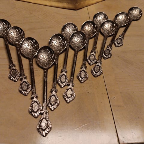 Stämplat med modellnummer (ej äkta silver). Normalt åldersslitage och patina, inget som påverkar användning eller helhetsintryck. Passar perfekt som: